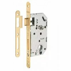 Coffre acier embouti galvanisé. Têtère acier bouts ronds. Demi-tour bipente laiton réversible sans démontage du coffre. Pêne acier zingué – gâche plate acier zingué. Mécanisme à 2 tours – Rappel du 1/2 tour par la clé. Carré 7 mm, entr’axe 70 mm.