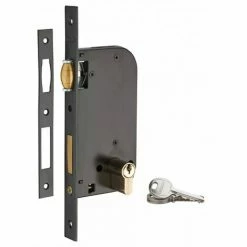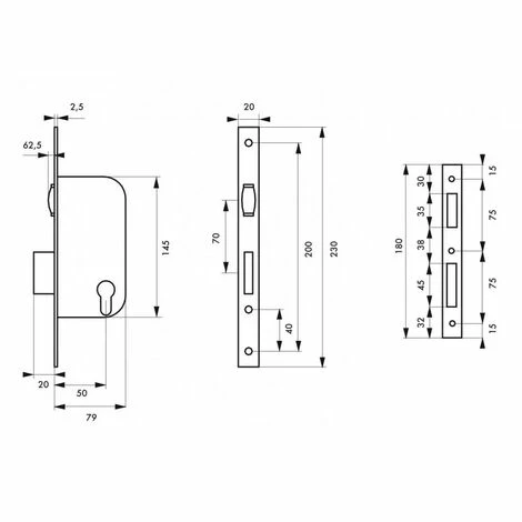 Coffre acier embouti. Têtère acier. Rouleau laiton. gâche plate acier.