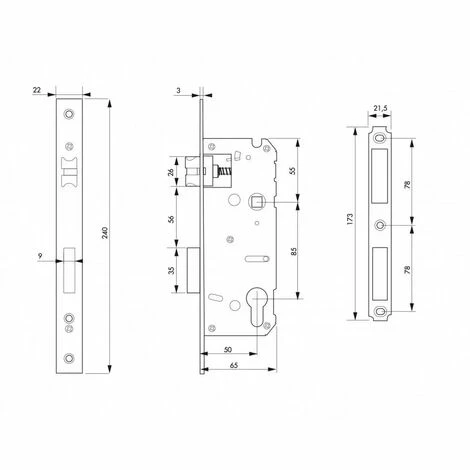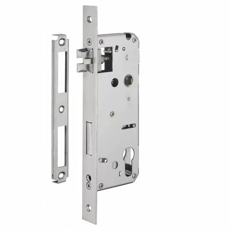 Serrure à encastrer à éjection du pêne avec fonction urgence. Axe : 50 mm. Entr’axe : 85 mm. Carré: 8 mm. Demi-tour réversible sans démontage du coffre.Têtère inox. Pêne acier inoxydable SUS304. Compatible avec S31B-C85.
