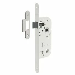Coffre acier embouti. Têtière acier. Demi-tour alliage réversible sans démontage du coffre. Gâche plate acier. Carré 7mm.- Dimension : 59x135mm