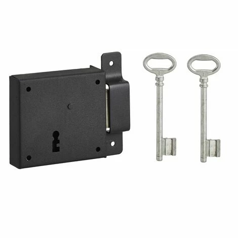 Coffre en acier cambré. Gâche à pattes acier cambré. Pêne alliage. Canon acier long. 35 mm. 2 clés polies. 6 variures.- Dimension : 85x76mm