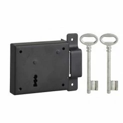 Coffre en acier cambré. Gâche à pattes acier cambré. Pêne alliage. Canon acier long. 35 mm. 2 clés polies. 6 variures.- Dimension : 95x76mm