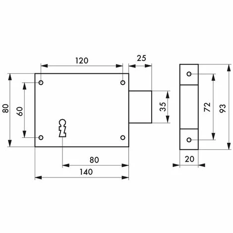 Coffre en acier cambré. Gâche à pattes acier cambré. Pêne alliage. Canon acier long. 35 mm. 1 clé polie. 6 variures.Conçue pour verrouiller efficacement votre porte de cave, cette serrure à appliquer à pêne dormant en acier est fournie avec une clé en acier poli et une gâche à patte sont fournies avec cette serrure. Cette serrure Thirard s’installe facilement et offre un verrouillage efficace de votre porte. Cette serrure en applique horizontale est disponible en différentes versions : pour une pose à droite ou à gauche, en 110 x 80mm 140 x 80mm, avec une ou deux clés.- Dimension : 140x88mm