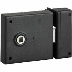 Coffre et gâche acier cambré. Pêne demi-tour alliage. Réversible, pour pose à droite et à gauche