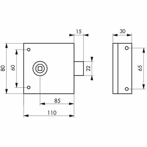 Coffre et gâche acier cambré. Pêne demi-tour alliage. Réversible, pour pose à droite et à gauche. Carré 6 mm.- Dimension : 110x80mm