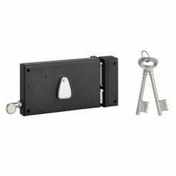 Coffre et gâche acier cambré. Pêne acier. Demi-tour acier. Canon alliage long. 40 mm. Mécanisme à 4 gorges 2 tours avec tirage ou à fouillot. Pêne 1/2 tour réversible pour porte ouvrant à l’extérieur. Carré 6 mm. 2 clés nickelées. 12 variures. Entrée de clé et de fouillot acier. Rappel du demi-tour par la clé- Dimension : 140x82mm