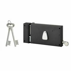 Coffre et gâche acier cambré. Pêne acier. Demi-tour acier. Canon alliage long. 40 mm. Mécanisme à 4 gorges 2 tours avec tirage ou à fouillot. Pêne 1/2 tour réversible pour porte ouvrant à l’extérieur. Carré?6 mm. 2 clés nickelées. 12 variures. Entrée de clé et de fouillot acier. A?TIRAGE : Rappel du demi-tour par la clé- Dimension : 140x82mm
