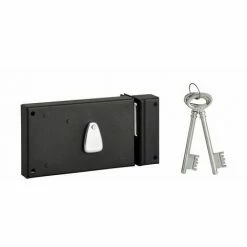 Coffre et gâche acier cambré. Pêne acier. Demi-tour acier. Canon alliage long. 40 mm. Mécanisme à 4 gorges 2 tours avec tirage ou à fouillot. Pêne 1/2 tour réversible pour porte ouvrant à l’extérieur. Carré 6 mm. 2 clés nickelées. 12 variures. Entrée de clé et de fouillot acier.- Dimension : 140x82mm