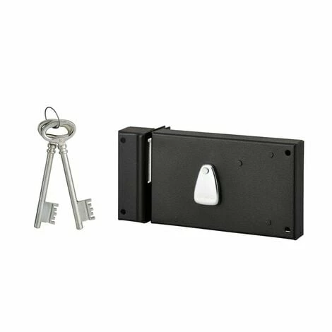 Coffre et gâche acier cambrĂ©. PĂŞne acier. Demi-tour acier. Canon alliage long. 40 mm. MĂ©canisme Ă 4 gorges 2 tours avec tirage ou Ă fouillot. PĂŞne 1/2 tour rĂ©versible pour porte ouvrant Ă l’extĂ©rieur. CarrĂ© 6 mm. 2 clĂ©s nickelĂ©es. 12 variures. EntrĂ©e de clĂ© et de fouillot acier.- Dimension : 140x82mm