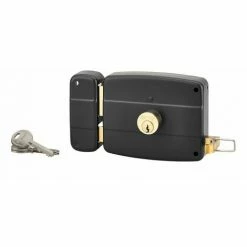 Coffre et gâche acier embouti. Pêne laiton, demi-tour laiton. Mécanisme à 3 tours. Double cylindre laiton long. 45 mm. Entrée de cylindre et de fouillot acier.- Dimension : 120x97mm
