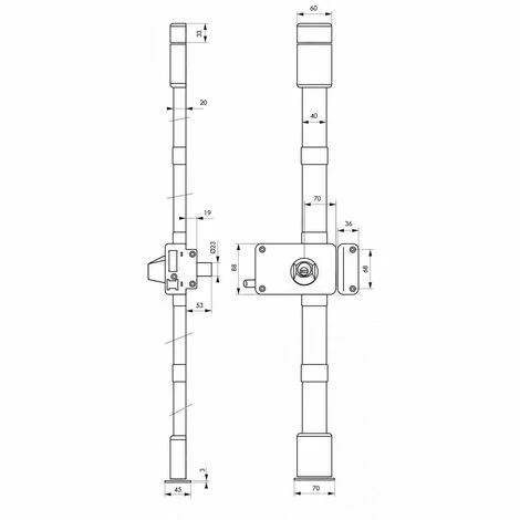 BoĂ®tier en acier embouti Ă©paisseur 20/10ème. Coffre de 140 x 88 mm. Tringles standard permettant une condamnation de porte de 1,65 m Ă 2,25 m. MĂ©canisme intĂ©rieur type Ă©querre permettant la manoeuvre du 1/2 tour avec la clĂ©, de l’intĂ©rieur comme de l’extĂ©rieur. PĂŞne dormant et 1/2 tour en laiton massif. PĂŞne haut et bas en acier Ă 16 mm sur tringles plates en acier permettant un ajustement très prĂ©cis Ă la longueur dĂ©sirĂ©e et ne nĂ©cessitant aucune recoupe. gâche avec tĂŞtère de haute rĂ©sistance. Cache-tringles, guides et gâches de pĂŞnes haut et bas en acier ne laissant apparaĂ®tre aucune vis de fixation. Enjoliveur de cylindre cĂ´tĂ© intĂ©rieur. CarrĂ©?6 mm.Le montage des serrures ne nĂ©cessite pas d’entaillage spĂ©cifique de la porte.Cylindre rond HG5Double cylindre laiton Ă 23 mm, longueur 60 mm. MĂ©canisme Ă 5 goupilles. 4 clĂ©s en acier nickelĂ©. Cylindre rond Transit 2Double cylindre laiton Ă 23 mm, longueur 60 mm. MĂ©canisme Ă 8 goupilles protĂ©gĂ© contre le crochetage. Protection contre le perçage par 1ère goupille + poussoir en acier trempĂ©. 4 clĂ©s plates rĂ©versibles en laiton nickelĂ© avec carte de propriĂ©tĂ©.Options : Jeu de tringles grande hauteur permettant un verrouillage jusqu’Ă 3 m. Bouton double.