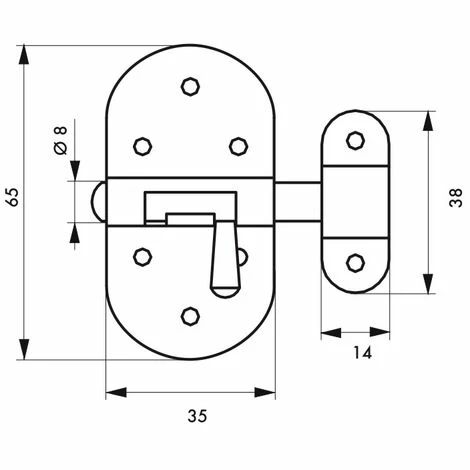 Platine acier embouti. Gâche acier embouti. Bouton poire. Pêne rond coulissant.- Usage : Meuble
