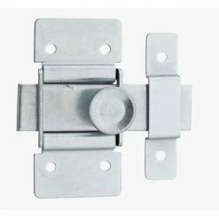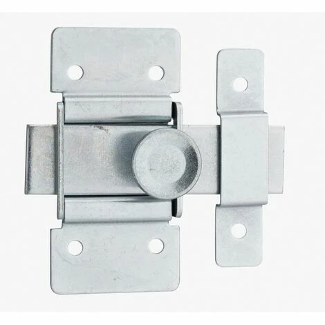 Platine acier cambré. Gâche acier cambré. Bouton rond nickelé. Pêne plat coulissant.- Usage : Meuble