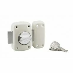 Le Verrou Corvette est équipé d’un cylindre laiton a 5 goupilles fournit avec 3 clés. Le coffre, la gâche et le pêne sont en acier. Il existe en version sans cylindre à bouton, double entrée ou avec un pêne de 160mm et cylindre 30mm pour porte de garage.