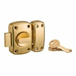 Coffre laiton embouti. Gâche laiton embouti. Pêne en laiton. Bouton barette laiton. Cylindre laiton à 5 goupilles. Protection contre l’arrachement du cylindre par pilier et cavalier. Entrée laiton. 3 clés en acier nickelé.