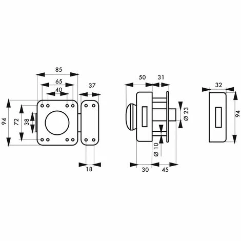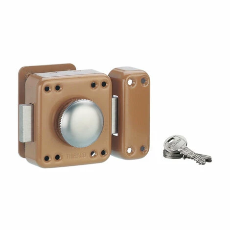 Coffre acier embouti. Gâche acier embouti. Pêne acier nickelé. Bouton ABS nickelé mat. Mécanisme intérieur renforcé (brevet déposé). Double fixation sur coffre à 8 vis (brevet déposé). Plaque de renfort. Cylindre laiton à 5 goupilles. Entrée laiton. 3 clés en acier nickelé.Le verrou de sûreté renforcé Rafale est fabriqué en acier embouti. Pouvant être ajouté à une porte déjà équipée pour doubler la sécurité contre les effractions, c’est le système de fermeture le plus simple pour verrouiller efficacement vos portes. Trois clés en acier sont fournies avec ce verrou, pour pouvoir partager l’accès ou pour conserver en cas de perte. Protégé par sa double fixation brevetée et son mécanisme intérieur renforcé, ce verrou s’installe facilement et garantit votre sécurité et celle de vos biens. Ce verrou de porte renforcé Thirard est disponible en plusieurs versions : à cylindre de 45mm et bouton intérieur avec finition bronze ou à cylindre de 45mm à finition bronze ou blanche.- Usage : Porte d’entrée vitrée