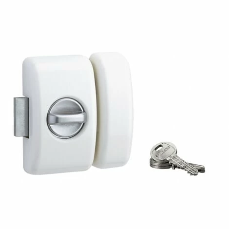 Le Verrou Universel est équipé d’un cylindre laiton a 5 goupilles avec une protection contre l’arrachement du cylindre par pilier et cavalier, fournit avec 3 clés. Le coffre, la gâche et le pêne sont en acier.