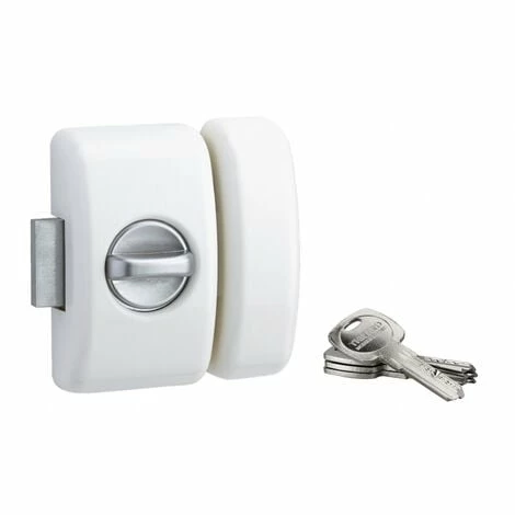 Le Verrou Universel est équipé d’un cylindre laiton a 5 goupilles avec une protection contre l’arrachement du cylindre par pilier et cavalier, fournit avec 3 clés. Le coffre, la gâche et le pêne sont en acier.