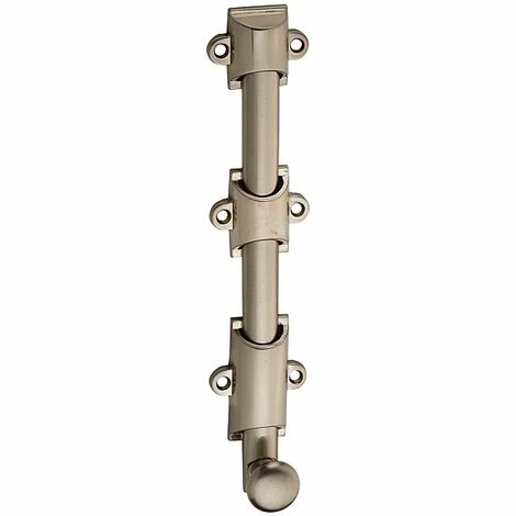 Verrou à plaquer à coulisse acier nickelé, longueur 200 mm, pêne ½ rond diamètre 24 mm, Longueur 200 mm