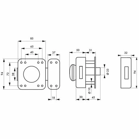 Coffre acier embouti. Gâche acier embouti. Pêne acier nickelé. Mécanisme intérieur renforcé. (brevet déposé). Double fixation sur coffre à 8 vis. (brevet déposé). Plaque de renfort. Cylindre laiton à 5 goupilles. Entrée laiton. 3 clés en acier nickelé.- Usage : Porte d’entrée vitrée