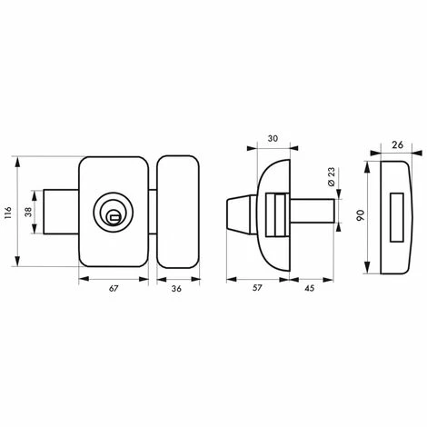 Le Verrou Universel est équipé d’un cylindre laiton a 5 goupilles avec une protection contre l’arrachement du cylindre par pilier et cavalier, fournit avec 3 clés. Le coffre, la gâche et le pêne sont en acier.