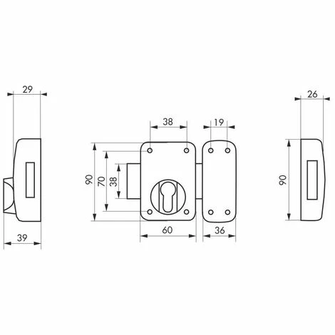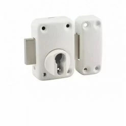 Coffre et gâche acier embouti. Pêne acier chromé mat. Bouton ABS chromé mat. Cylindre laiton à 5 goupilles type HG5. Protection contre l’arrachement du cylindre. par pilier et cavalier (sauf cylindre de 30 mm). Pêne interchangeable. Entrée laiton – 3 clés en acier nickelé.