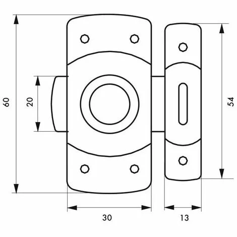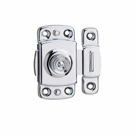 Coffre laiton embouti chromé. gâche laiton embouti chromé. Bouton laiton molleté. Pêne acier chromé.