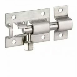 Corps inox cambré. gâche inox cambré. Bouton inox décolleté. Pêne rond coulissant.