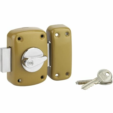Coffre acier embouti époxy bronzeBouton ABS chroméCylindre 5 goupilles Ø 23 mm. 3 clés acier nickelées