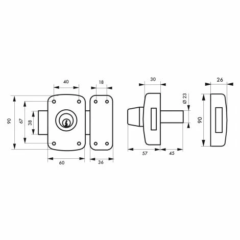 Capot de coffre acier embouti. Capot de gâche acier embouti. Support de gâche et de coffre acier zingué. Pêne acier chromé. Bouton ABS chromé. Cylindre laiton à 5 goupilles. Protection contre l’arrachement du cylindre par pilier et cavalier. 3 clés en acier nickelé. Fourni avec 5 câles de gâche pour porte à recouvrement.