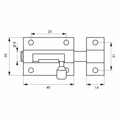 Corps laiton étiré. Gâche laiton étiré. Bouton laiton décolleté. Pêne rond coulissant.